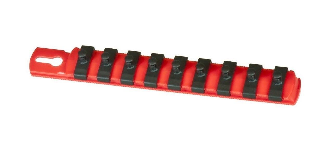 Ernst 8410 8" 1/4" Dr. Socket Organizer Rail with 9 Twist Lock Clips - Red