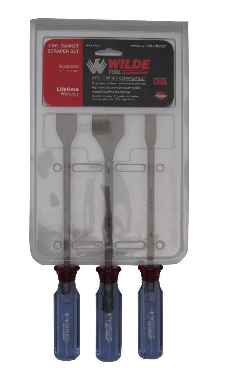 Wilde Tool GS3 3 Piece Gasket Scraper Set -1/2", 1", 1-1/2" Blade - USA