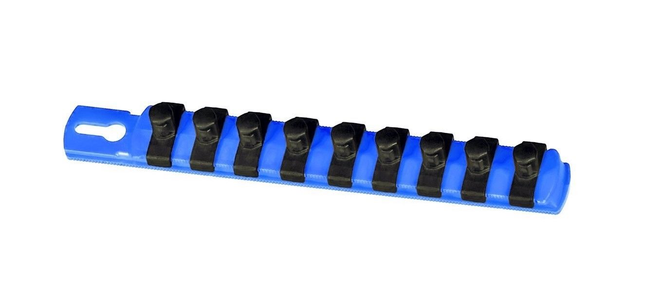 Tool Organizers > Ernst 8408 8" 3/8" Dr. Socket Organizer Rail with 9 Twist Lock Clips - Blue